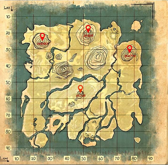 Подробная Карта кристаллов острова ARK: Survival Evolved: