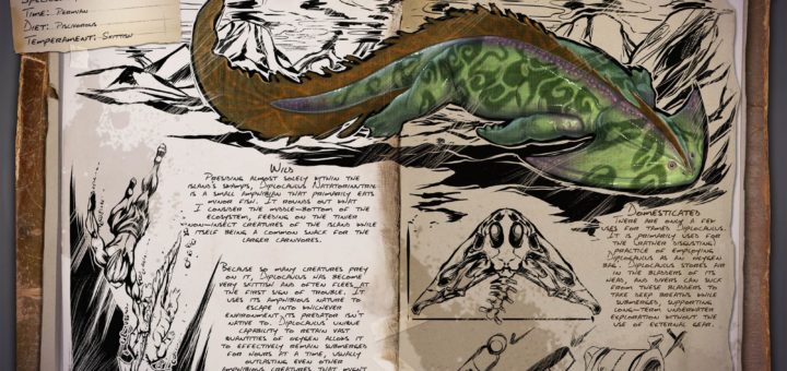Диплокаулус встречается исключительно в болотах острова АРК, Diplocaulus Natatorinutrix это небольшая амфибия, преимущественно питающаяся рыбой. на пищевой цепочке мира АРК Сурвайвал Эволв находится ближе к низу, являясь источником пищи для больших плотоядных животных.