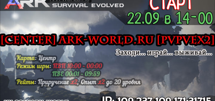 Старт сервера [CENTER] ARK-WORLD.RU [PvPvEx2]