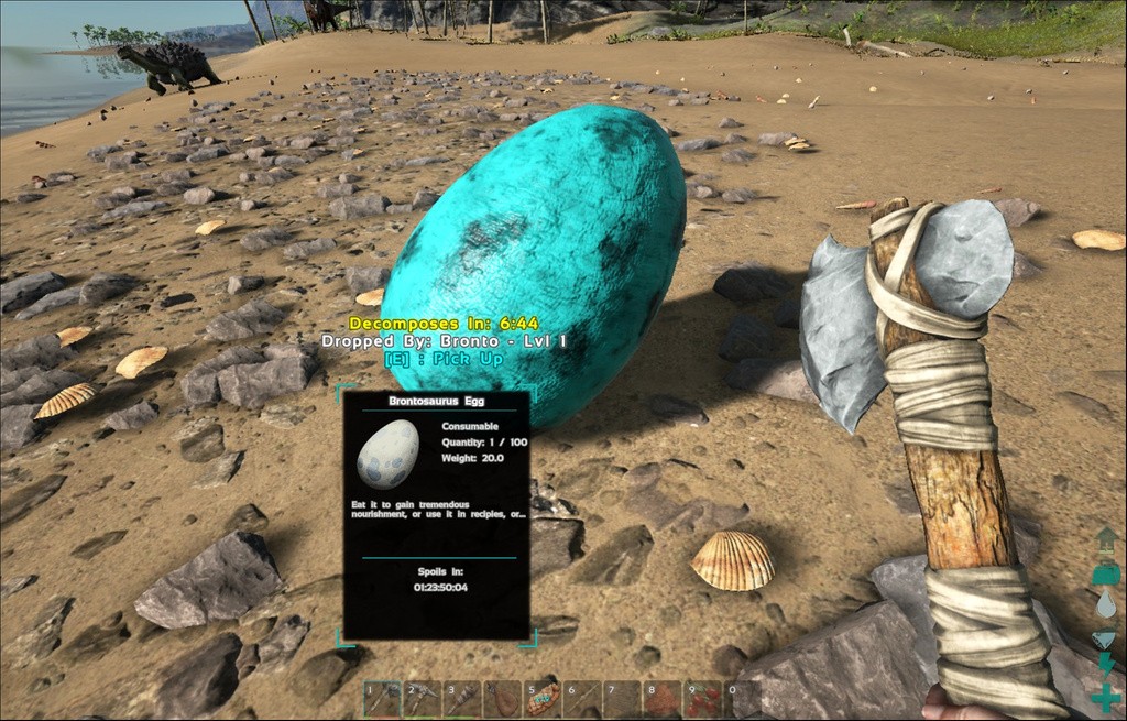 ARK Survival Evolved Яйца динозавров вы можете найти в любом случайном месте, где динозавр решит избавиться от яйца. Что делать с яйцом -спросите вы? Очень просто – съесть, либо заняться разведением динозавров! Все яйца имеют разный цвет и каждое яйцо имеет свой вес, в зависимости от динозавра.